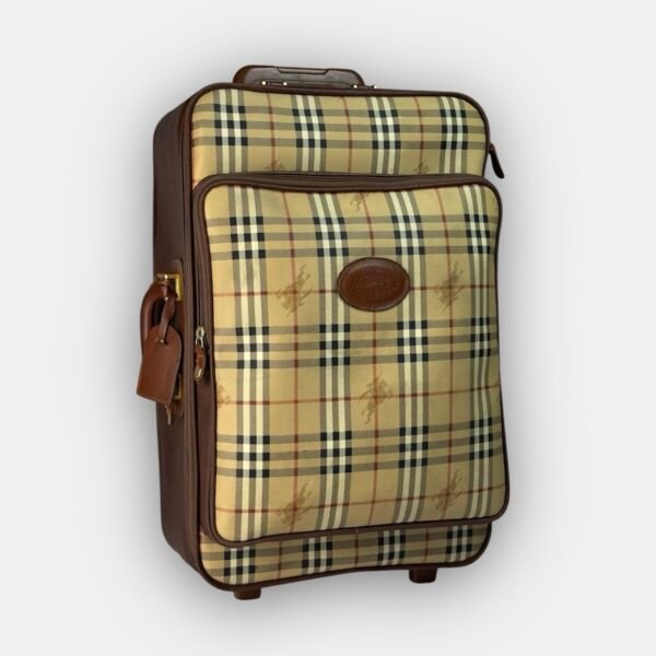 Beige Nova-Checked Vintage Burberry Leather Trolley Suitcase