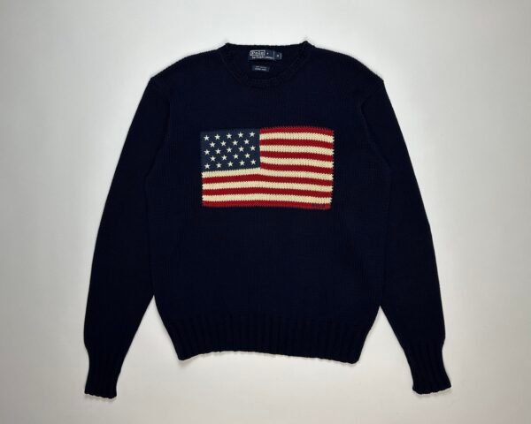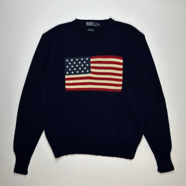 Navyblue Vintage (’90s) Polo Ralph Lauren USA Flag Hand Knit Sweater