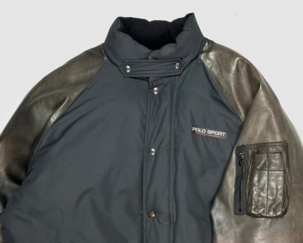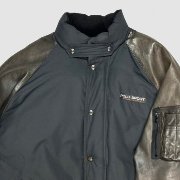 Black/Brown Vintage (1990s) Ralph Lauren Polo Sport Heavyweight Down Puffer Jacket With Leather Sleeves