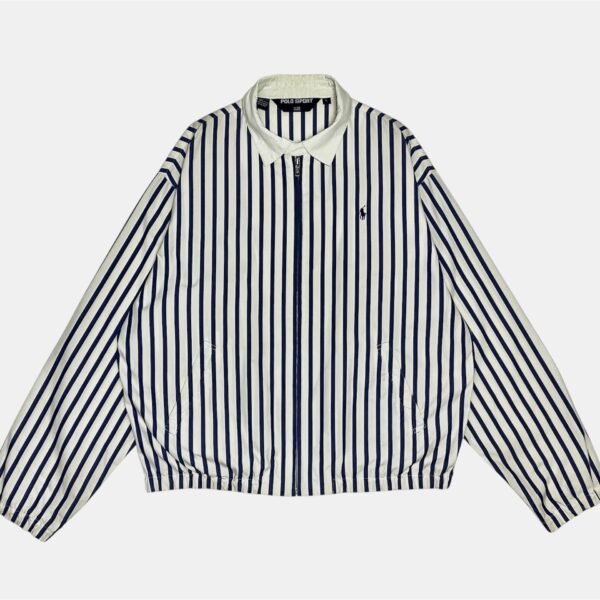 White/Blue Striped Vintage Polo Sport Ralph Lauren Lightweight Bayport Jacket