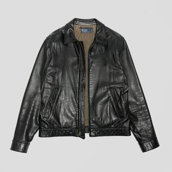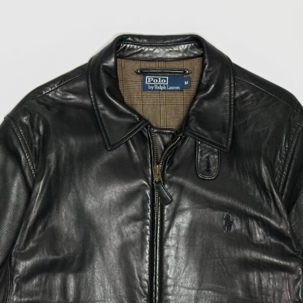 Black Vintage Polo Ralph Lauren Heavyweight Leather Harrington Jacket