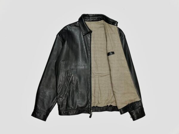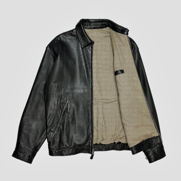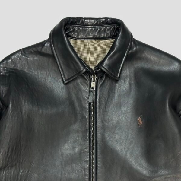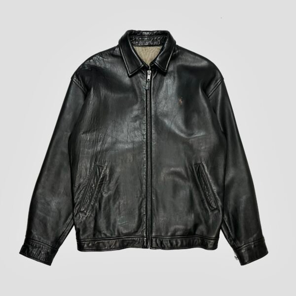 Black Vintage Polo Ralph Lauren Heavyweight Leather Harrington Jacket