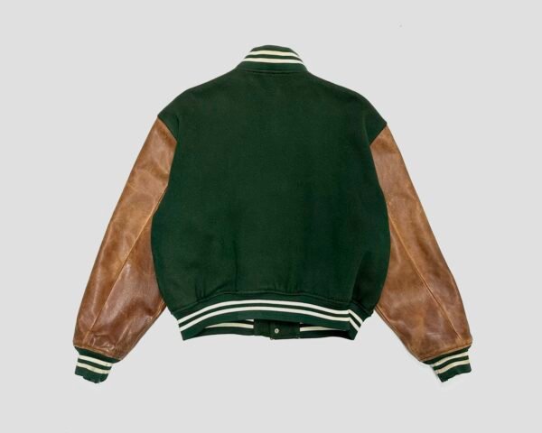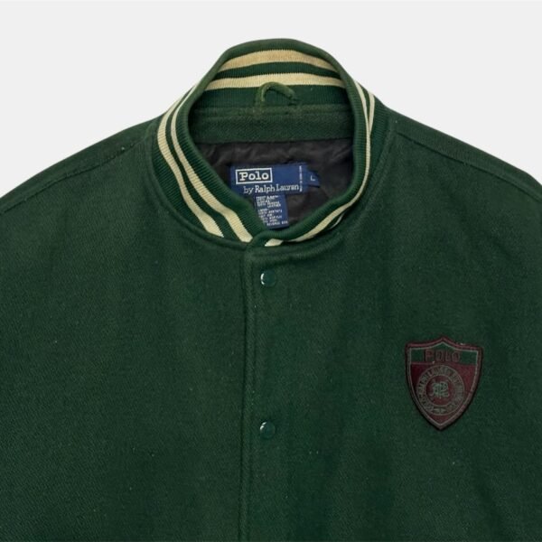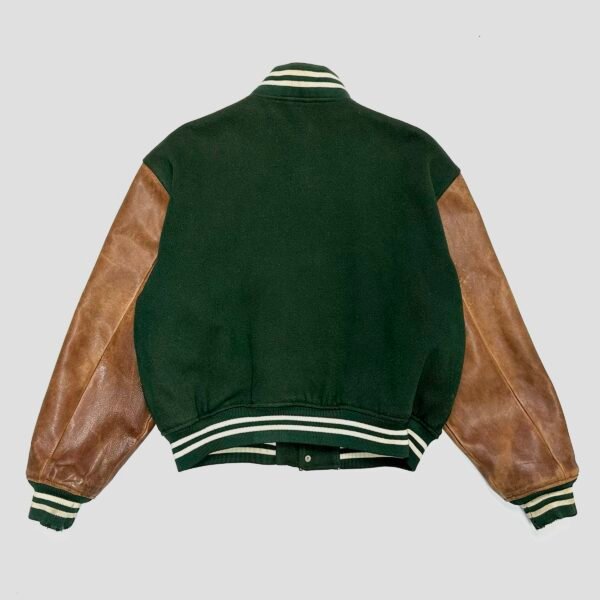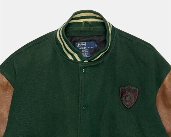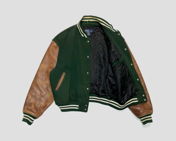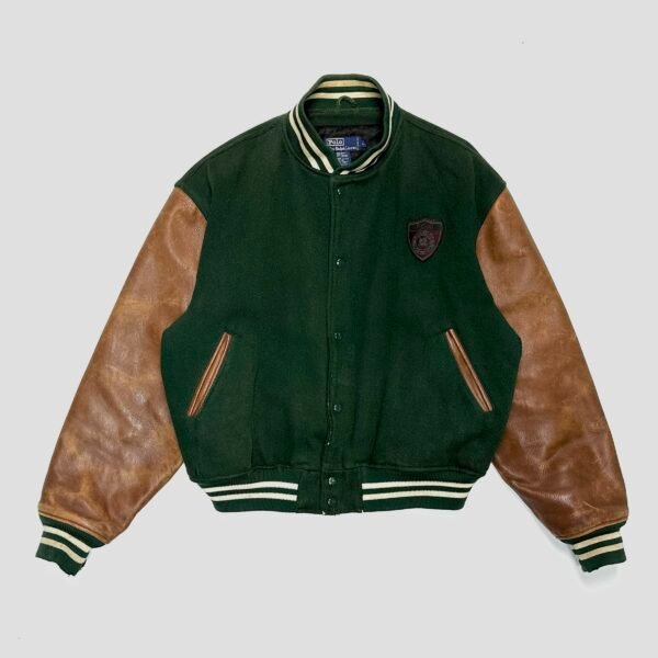 Green/Brown RARE Vintage (1990s) Polo Ralph Lauren Mackinaw Wool/Leather Heavyweight Varsity Bomber Jacket