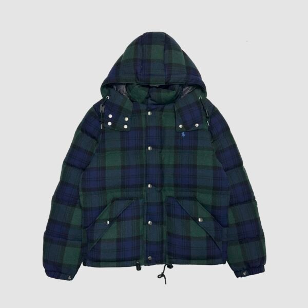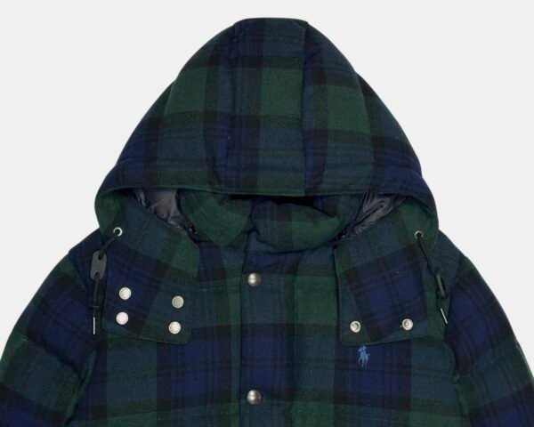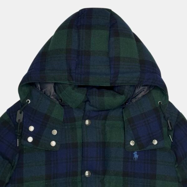 Navy Blue/Green Tartan Modern Polo Ralph Lauren Heavyweight Wool Blend Down Puffer Jacket