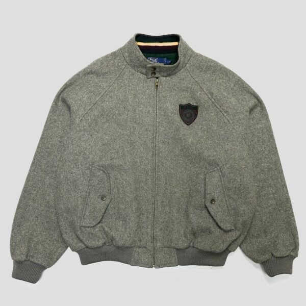 Grey RARE Vintage (1990s) Polo Ralph Lauren Mackinaw Wool Heavyweight Varsity Bomber Barracuda Jacket